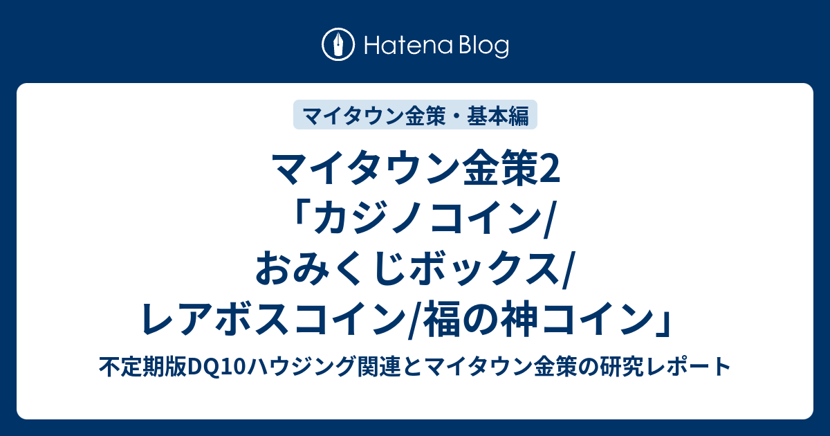 マイタウン金策2 カジノコイン おみくじボックス レアボスコイン 福の神コイン 不定期版dq10ハウジング関連とマイタウン金策の研究レポート